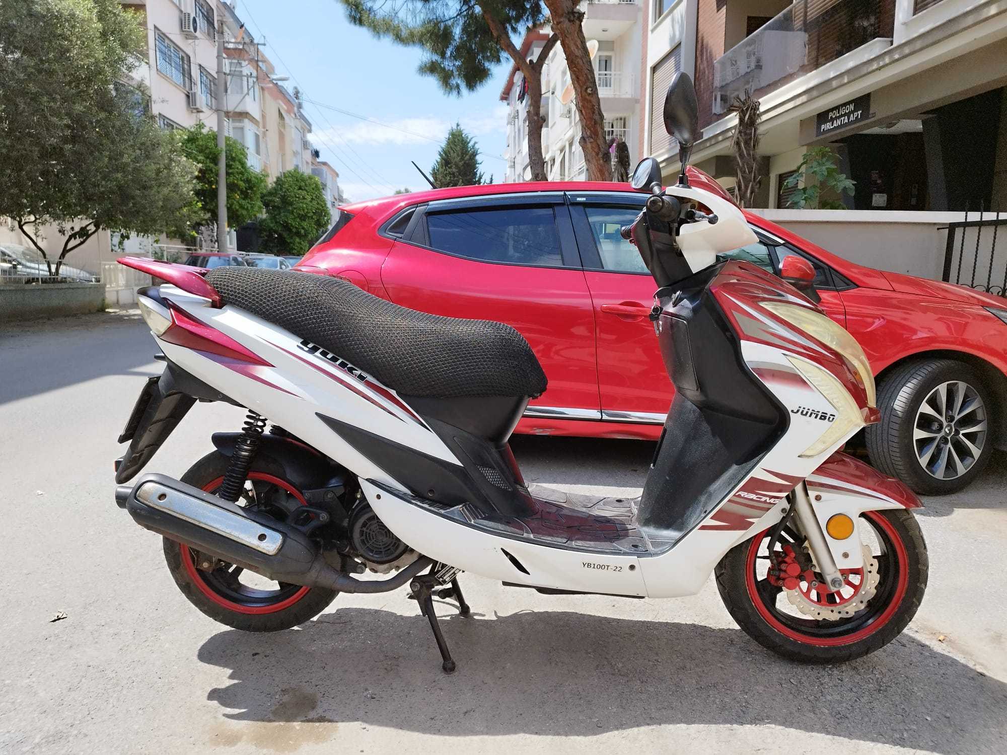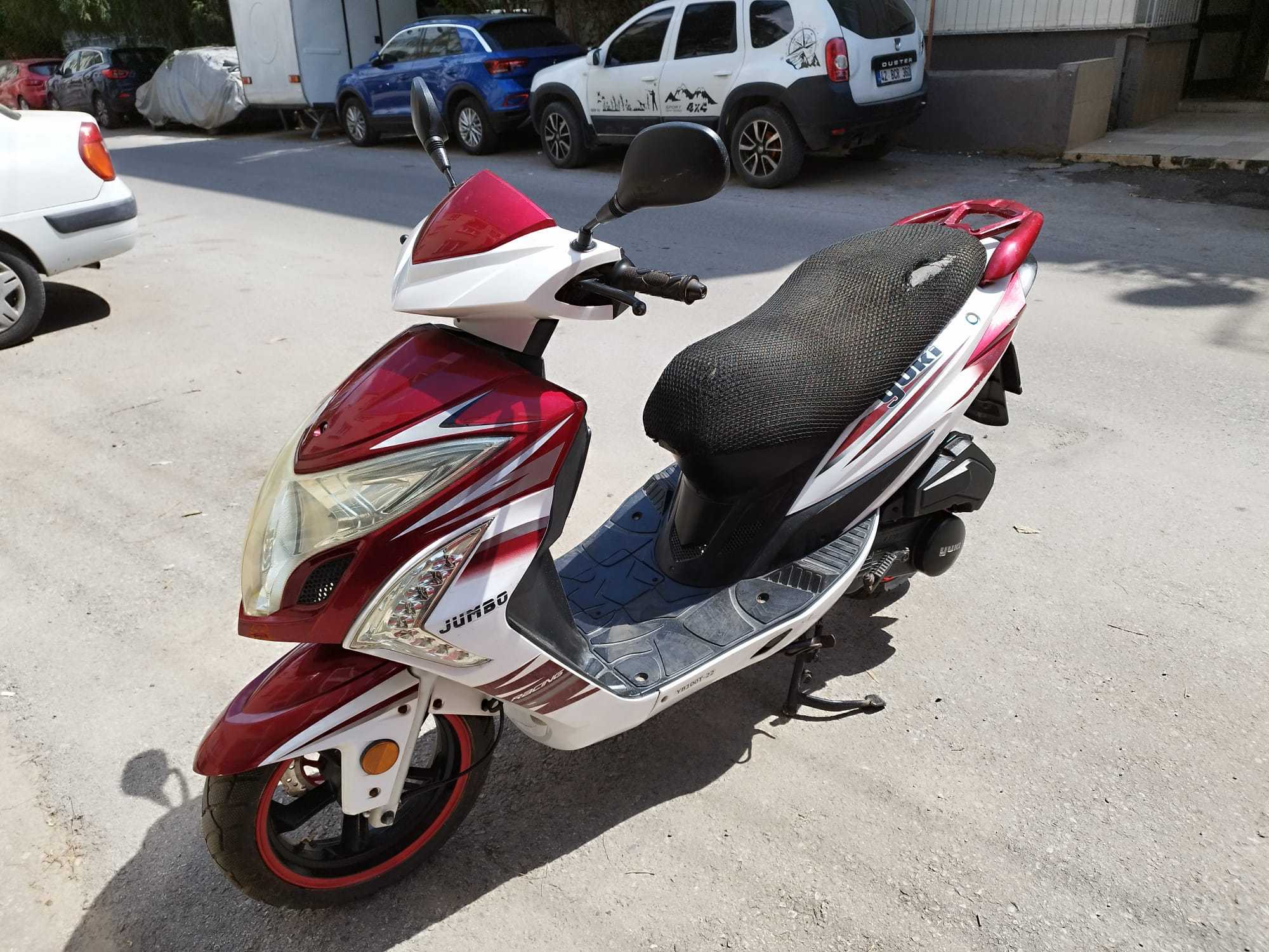 2017 Model YUKİ Jumbo 100 cc Scooter . 1582 Düşük Kilometrede . 1 Yıllık Trafik Sigortası Yapılmadı , Alıcı Yapacakmış . Pazarlıkla Fiyatı 40 Bin TL .